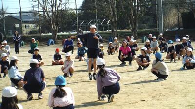 ãæ¥éäŒã¿ã䜿ã£ãŠãä¹ ãã¶ãã®äœè²éäŒãè¡ãããŸãããä»åã¯ãæãšè¶³ãéãåããããäœæã«ææŠã§ããè ãïŒæåã§åãããŠãè¶³ã¯ïŒæåã§éããã»éããç¹°ãè¿ããªã©ãè³ãšäœã®äŒéåè·¯ãåäžãããåããããŸãããåäŸãã¡ã¯ãã¡ãããå çãã¡ãçå£ã«åãçµãã§ããŸãããé空ã®ããšãå šæ ¡ã§æ°æã¡ããéåããŸããã