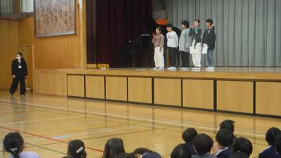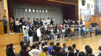 ãïŒå¹Žçã®åžäŒé²è¡ã§ãïŒæã®é³æ¥œéäŒãè¡ãããŸãããä»æã®æã¯ãæ¥æã®ãïŒå¹ŽçãéãäŒãã§ãæãäºå®ã®ããã¹ããã¬ã³ãããšããæ²ã§ããé£ããæè©ã®éšåããããŸãããã¿ããªããèŠããŠå€§ããªå£°ã§æã£ãŠããŸããããã®äžå¹Žéãæ¯ãè¿ã£ãŠãå¿ã«ãããããšæã¿ãæå£°ã§ããã