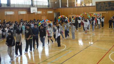 ãä»åã§ïŒåç®ãšãªããå šæ ¡é¬Œãã£ãã®äœè²éäŒãè¡ãããŸãããïŒå¹Žçãšå çãã¡ã鬌ã«ãªã£ãŠãïŒïœïŒå¹Žçã远ããããŸããã¿ãããããããããã®å Žã§åºãŸã£ãŠãéããŠããã»ãã®åã«ã¿ããããŠããã£ãããŸãéãããããšãããããããã«ãã®ã«ãŒã«ã§æ¥œãã¿ãŸãããã»ãŒïŒïŒåéãéãç¶ãã远ãããç¶ããåäŸãã¡ã®äœåã«ã³ã£ããããŸããã