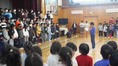 ã忥åŒåœæ¥ã®æãæ ¡åºã«å šå¡éåããŠãã忥ããç¥ãããäŒããè¡ããŸãããçãæéã§ãããåšæ ¡çãïŒå¹Žçãšãå¥ãããæåŸã®ãšãã§ããåšæ ¡ç代衚ã®ïŒå¹Žçããã¯ããªãŒããŒãšããŠé 匵ã£ãŠãããïŒå¹Žçãžã®æè¬ã®èšèãéãããŸããã忥çã®ä»£è¡šããã¯ã次ã®äžä»£ãžãšããã³ãæž¡ãã¡ãã»ãŒãžãéãããŸããã