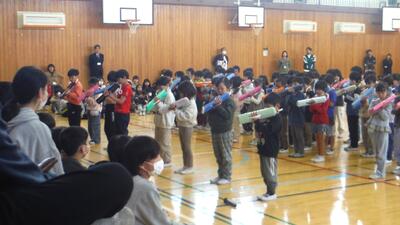 ãæ¬æ ¡ã®åŠæ ¡éå¶åè°äŒå§å¡ã«ã鳿¥œã®æå°ãå°éãšããå çãããã£ããããŸããïŒå¹Žçãã忥åŒã§æããæ ç«ã¡ã®æ¥ã«ãã®ç·Žç¿ã®ãããç¹å¥ææ¥ãããŠããã ããŸãããå çã®æå°ã«ãããåäŸãã¡ã¯ã¿ãã¿ãã³ããã€ãã¿ãæå£°ãå€ãã£ãŠãããŸãããæ¬çªã§ãç·Žç¿ã®ææãåºãããšãããšæããŸãã