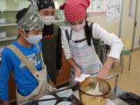 5年生が、ご飯を炊く実習に挑戦していました。炊飯器ではなく、耐熱ガラスの鍋を使ってガス火で炊きます。火加減が難しいけれど、普段見ることのできないお米の変化が観察できて、とても興味深い実習です。