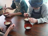 5年生が、味噌汁をつくる調理実習にチャレンジしました。煮干しの頭とはらわたをとってだしをとり、手順をよく確認しながら、一生懸命作っていました。家庭科室には出汁と味噌のよい香りが漂っていました。