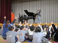 エバリー音楽事務所から二人の方に来ていただき、1~3年生を対象にしたミニコンサートをしていただきました。ピアノと尺八という少し珍しい組み合わせで、様々な曲を演奏してくださりました。曲に合わせてかけ声をかける場面もあり、楽しい時間があっという間に過ぎました。