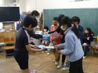 お世話になった6年生に感謝の気持ちを伝えるため、縦割り班で給食を食べる「ありがとう給食」が行われました。次のリーダーとなる5年生が進行役を務め、給食の配膳は4年生が担当でした。食後は室内レクで、最後の「なかよしあそび」をしました。最後に、1~5年生が作ったお手紙を6年生に渡して、感謝の気持ちを伝えました。教室に戻って、もらった手紙を読んでいる6年生の姿に、心が温かくなりました。
