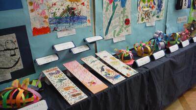 畑中公民館で開催されている「特別支援学級合同作品展」を見に行ってきました。畑中公民館には、新座中校区と第三中校区の学校の作品が展示されていて、力作ぞろいでした。畑中公民館の館長さんが、「来館者にとても好評の作品展です。」と教えてくださいました。一つ一つの作品に作り手の思いが込められていて、図工・美術の作品っていいなぁと、改めて感じました。