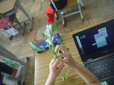 こぶし学級 サツマイモの苗をうえました! 投稿: ルーム管理者 (17:38) サツマイモの苗をよく観察して、クロムブックに記録します。 葉っぱの色は、形は、手触りは・・・ 観察の後、畑にうえて、水やりもしました。おいしい、おいもができるのが楽しみですね。😊 0 -