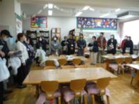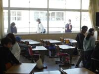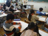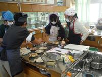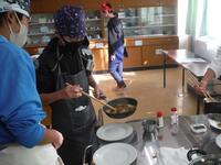 6年生が、ジャガイモ、玉ねぎ、ベーコンを使った炒め物の調理に取り組んでいました。「ちょっと焦げているぐらいがおいしい」などと言いながら、楽しそうに作業をしていました。廊下を通りかかった2年生が、いい匂いにつられて、うらやましそうに見ていました。