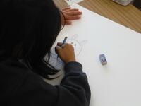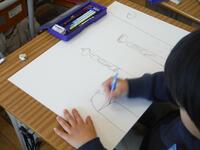 1年生の図工の時間です。「おはなしだいすき」というテーマで、自分の好きなお話を絵に描いてみる活動をしていました。大きくて真っ白な画用紙に、のびのびと絵を描いている1年生の姿が印象的でした。